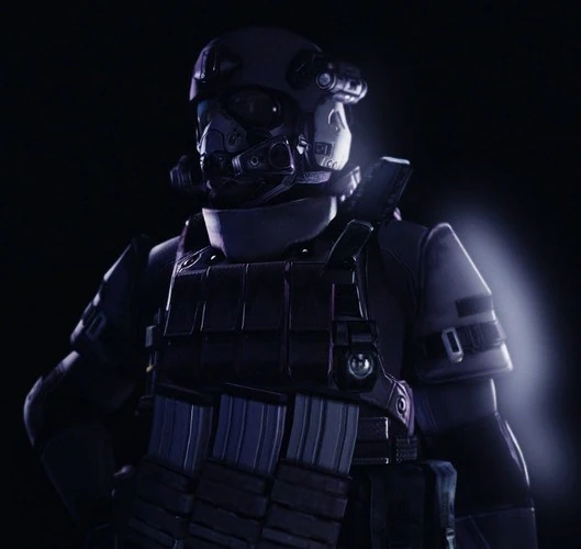 Su cuerpo esta cubierto por un traje especial parecido al de los miembros de la B.S.A.A. y permite el modo cooperativo en la campaña de Ada. El lleva una pistola similar a la que lleva Chris y a la de Jake, pero lleva un Cuchillo como el de Leon, también posee movimientos de ataque cuerpo a cuerpo de otros personajes como Leon, Chris, Piers, etc pero tiene su propio movimiento exclusivo que es bastante poderoso. Si bien su traje se parece un poco al de la B.S.A.A., este no lleva los mismos colores y lleva un casco diferente. Su voz es un poco grave (en la versión de español).