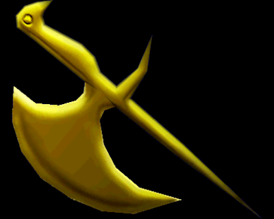 | “ | Es un objeto que han colocado en la placa del águila. Está hecho de oro y parece una alabarda de la edad media. | ” |
