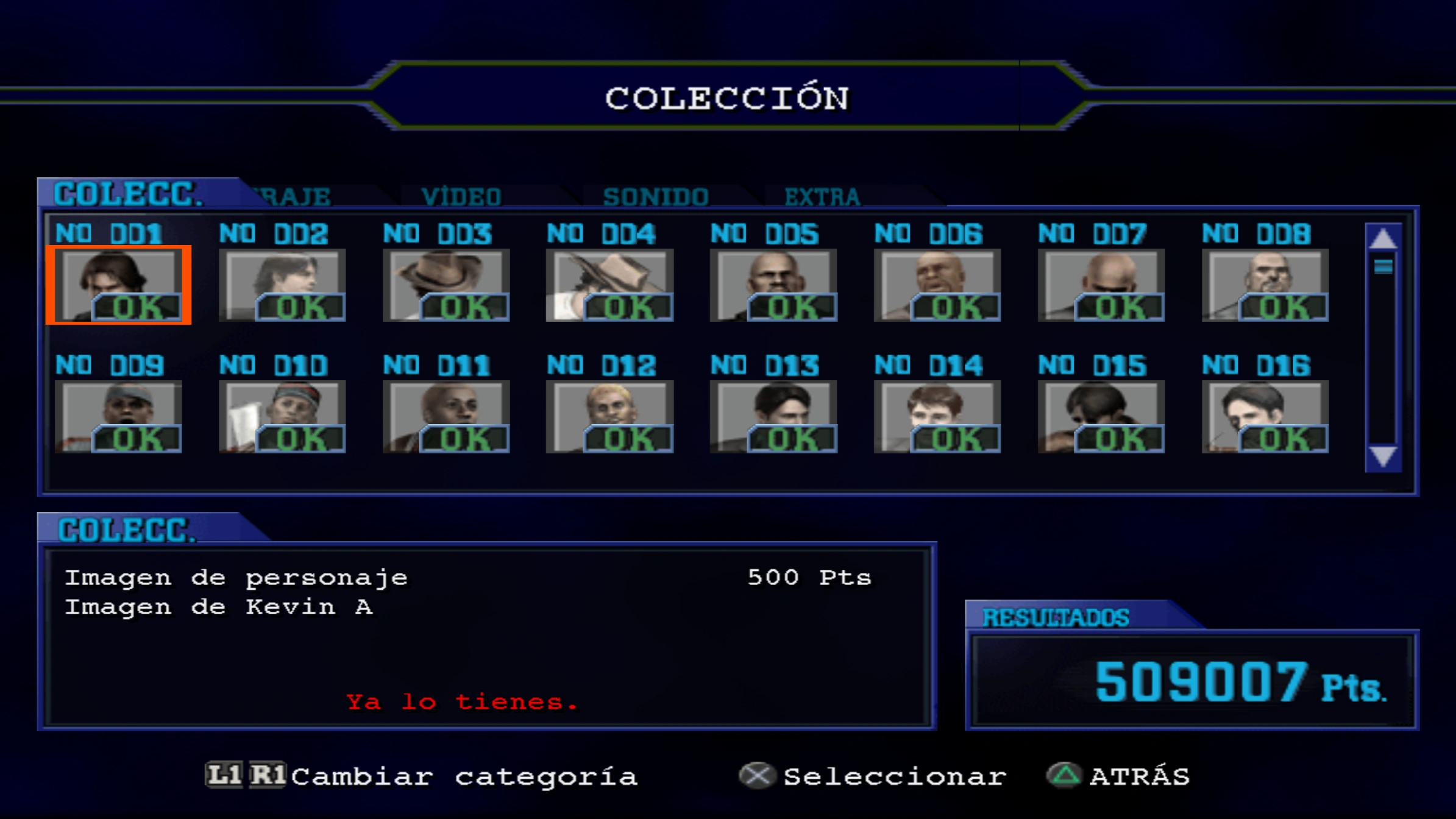 En la sección de sonido se podrán encontrar archivos de audio de los protagonistas del juego y temas de la banda sonora.