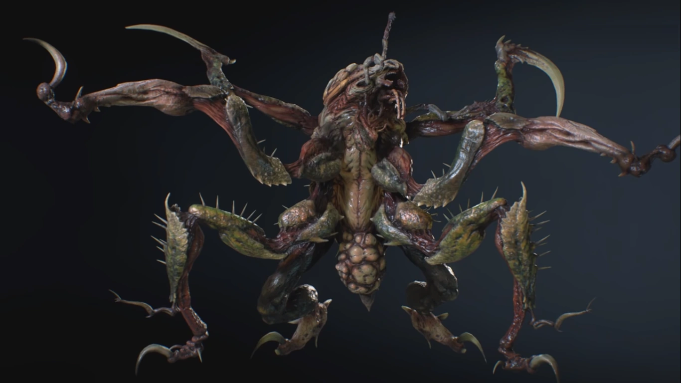 La apariencia de la criatura es particularmente grotesca debido a la exposición de los músculos provocada por el rápido crecimiento inducido por el virus-T, que obliga a la criatura a sufrir mudas repetidas.