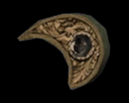 | “ | Una placa metálica con un ónice engastado. | ” |