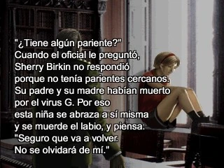 ¿Tiene algún pariente?. Cuando el oficial le preguntó, Sherry Birkin no respondió porque no tenía parientes cercanos.