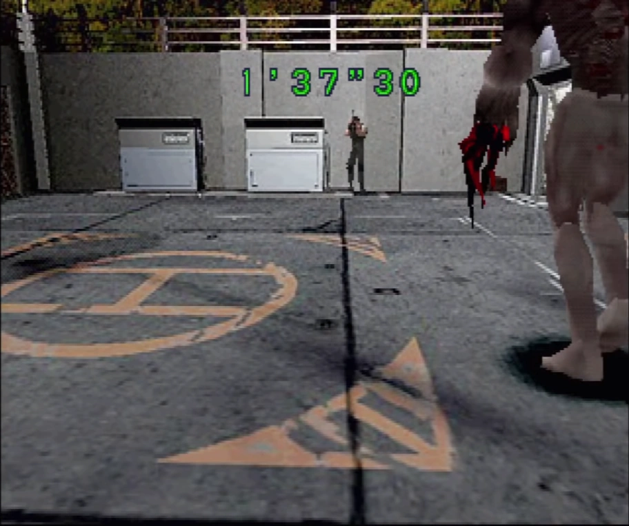Existe un detalle no menor para este combate y es que Chris, por algún motivo de programación, gusta de apuntar un poco hacia la izquierda de la hitbox del Tyrant, por lo que, tras cada disparo debemos volver a apuntar el arma (presionando el botón correspondiente), o corremos el riesgo de fallar alguno de los tiros (alcanza con que el Tyrant se mueva 1 píxel hacia su derecha para que Chris falle el disparo).