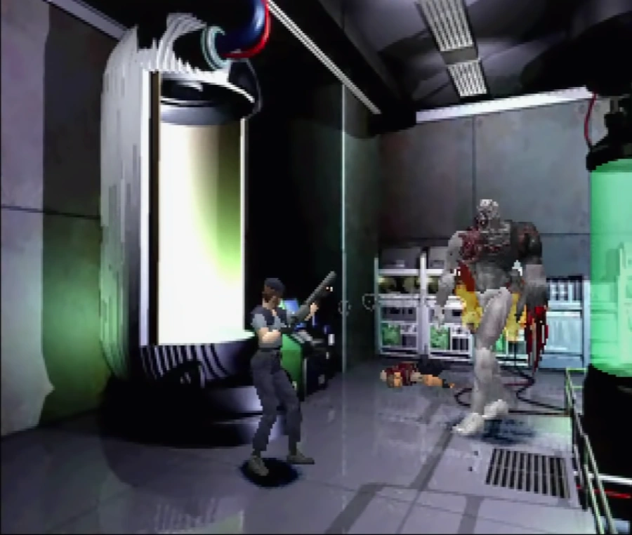 Primer encuentro: una vez finalizada la cinemática en la que Jill y Barry deciden si deben dejar vivo al monstruo o no, Barry le libera del contenedor de cristal en donde éste estaba dormido. Una vez que el Tyrant golpea a Barry y nosotros asumimos el control de Jill debemos correr hacia adelante tres pasos, nos giramos y disparamos. Con tres tiros del lanzagranadas equipado con granadas explosivas será suficiente para enviar al Tyrant al suelo.