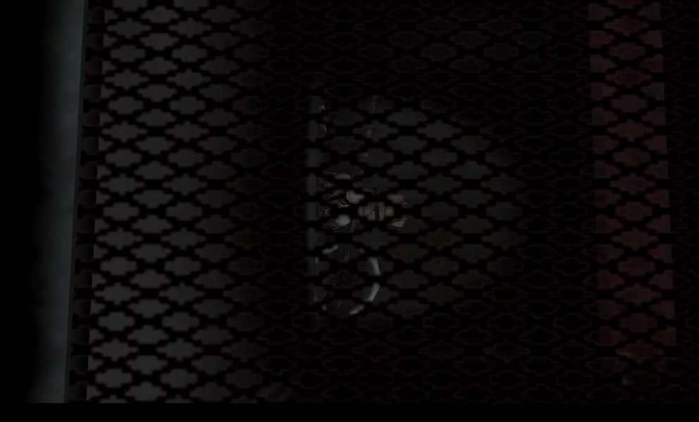 Nosferatu attaché dans sa cellule, vu de dessus dans la pièce secrète de son bureau.