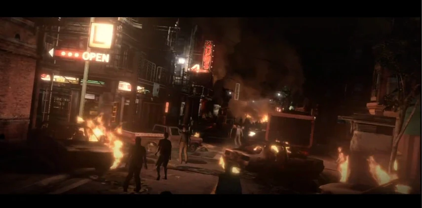 De plus, le long des stations de métro il y a des cafés et des magasins d'armes, des stations d'eesence et des magasins. La vie paisible était prétiquée. (また、地下鉄の駅周辺にはカフェやガンショップ、ガソリンスタンドなどの店舗が立ち並び、平和な暮らしが営まれていた。 Mata, chikatetsu no eki shūhen ni wa kafe ya gan shoppu, gasorinsutando nado no tenpo ga tachinarabi, heiwana kurashi ga itonama rete ita.)