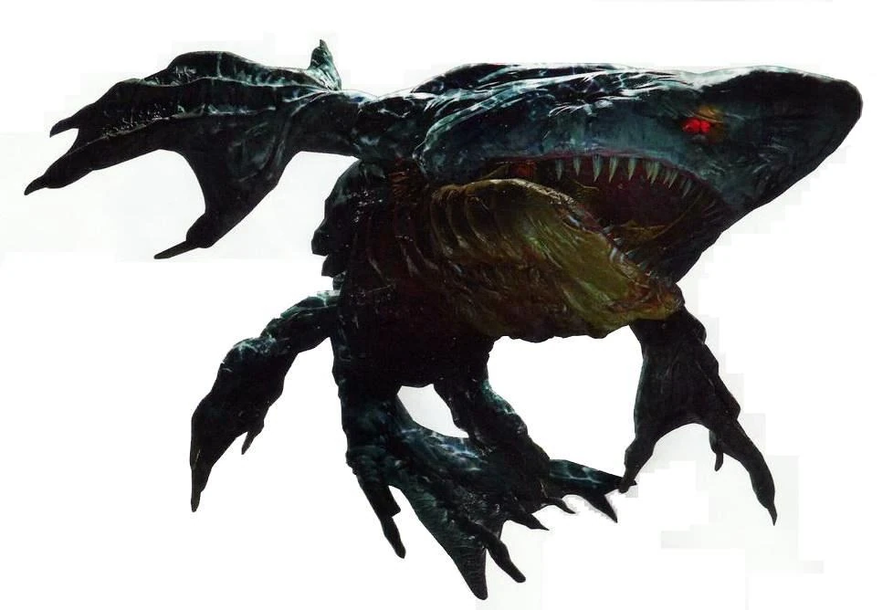 Его язык ужасно деформирован, покрыт костными выступами и ярко-оранжевым выступом и занимает большую часть головы существа. Этот язык, кажется, способен растягиваться, чтобы поймать в ловушку своих жертв. На плавниках существа имеются когти, которые позволяют ему передвигаться по пересеченной местности и преследовать добычу в сухой среде.
