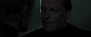 Isaacs enters an elevator where he forces the Red Queen to deactivate herself. As the Red Queen does so, she taunts "Doctor Isaacs you and the Umbrella High Command. You are all going to die down here." Alice and Claire enter the elevator where Isaacs' technological enhancements enable him to predict their moves and dodge their bullets. Isaacs' fight with Alice takes them to the laser grid which he activates. When Alice dodges the lasers, Isaacs engages her hand-to-hand in the room, proving more than a match for Alice. Isaacs throws Alice around and even cuts off the fingers of her left hand with the lasers before discovering that she has dropped an activated grenade in his pocket. The grenade seriously wounds Isaacs who apparently dies moments later. Alice then takes the anti-virus and heads for the surface.