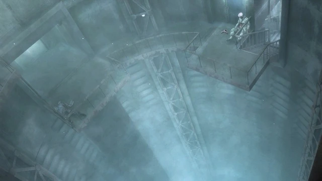 The shaft passage is a circular walkway located several stories above a shaft, connecting an aircraft hangar intended for Cmdr. Alfred Ashford with his office without requiring outside passage. It consists of two levels separated by a ladder, and a staircase down to another corridor. Due to the plane crash, the room has been exposed to the tundral environment and is cold, though not icy.