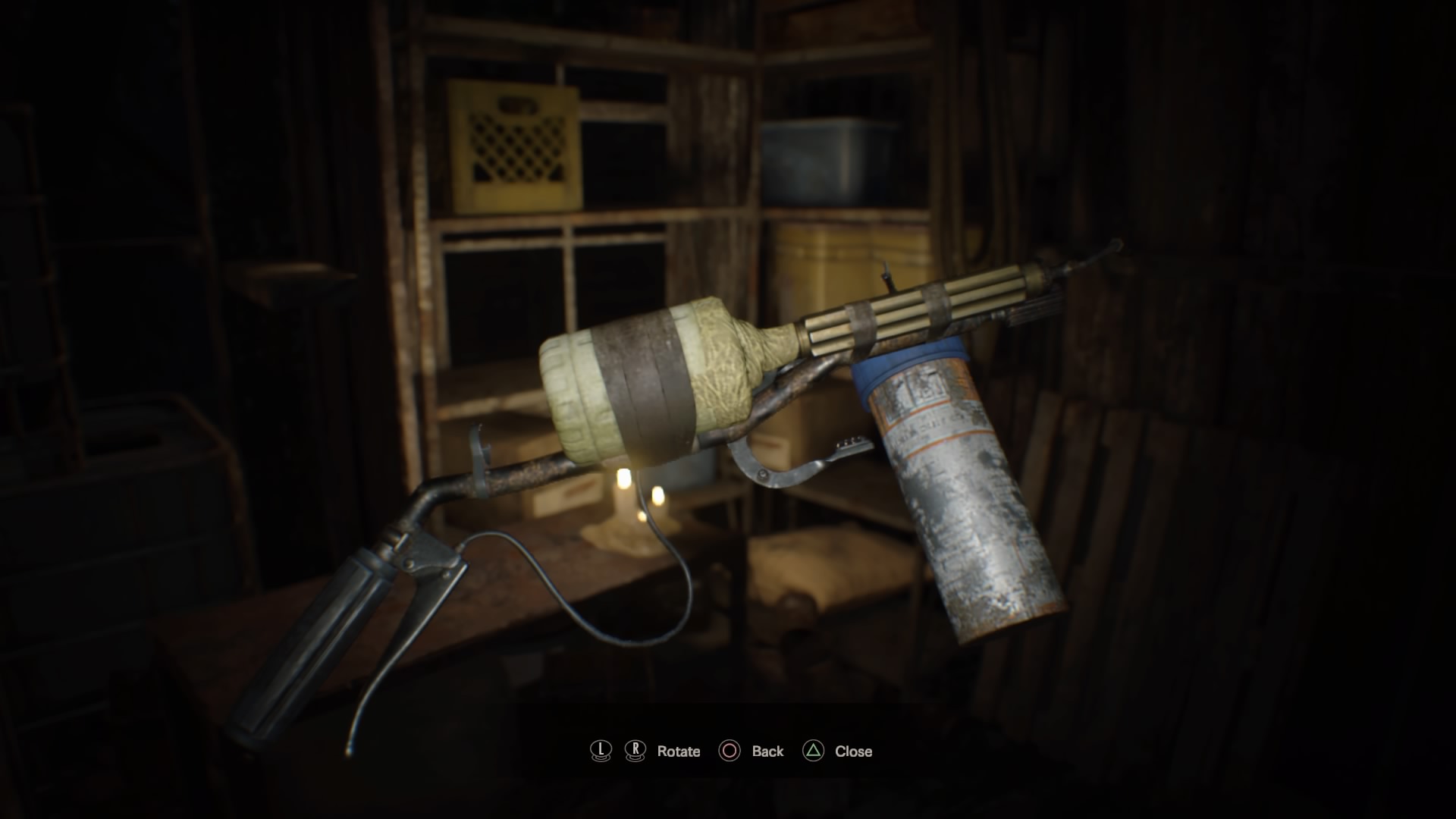 "A homemade flamethrower crafted from junk. Needs fuel to burn." — Inventory description |