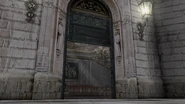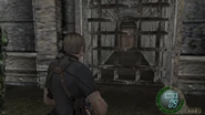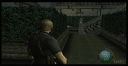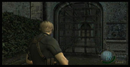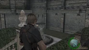 This area is also playable in the "Separate Ways" scenario but, unlike Leon, Ada Wong has to fight zealots here. Ada starts out at the fountain on the ground floor next to the Merchant, who will now sell her the Bowgun. The door to exit is locked until a certain number of Zealots are killed, then a Red Cultist will spawn with a few henchmen and open the gate.