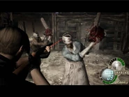 The Chainsaw Sisters are much like the Chainsaw Men having very high health, flinch resistance, and an attack that can instantly kill the player. However, the Chainsaw Sisters swing their chainsaws much faster than the men, making them even more dangerous. There is a secondary death animation that only occurs while playing as Ada and the player is killed while walking backwards or is up against a wall.