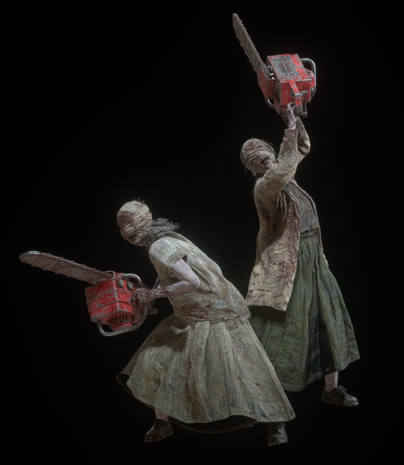 They wielded red chainsaws and wore bandages completely covering their heads. Like the Chainsaw Man, they are slower than the player.