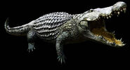 Crocodiles are encountered in the marshlands near Kijuju by BSAA partners Sheva Alomar and Chris Redfield. They dwell in waist-deep water and are capable of killing either of them with a single bite. They can be killed, although they will respawn and only surface when prey is nearby. There are about ten of them in the first area you encounter them, making it wiser and more prudent to simply run past them given their respawning behavior and lack of rewards. They are very large, roughly fifteen to twenty feet long.