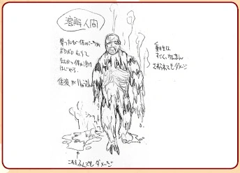 The Dissolving human (溶解人間 Yōkai ningen) was an enemy design that was scrapped in the concept-art phase. The creature was intended to fall apart into a liquid form after each successive hit from gunfire.[1]