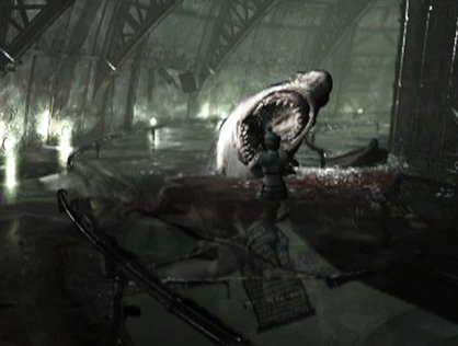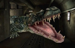 This giant alligator found in the sewers beneath Raccoon City is easily large enough to completely consume the player in its maw, and it will do just that if it gets close enough.