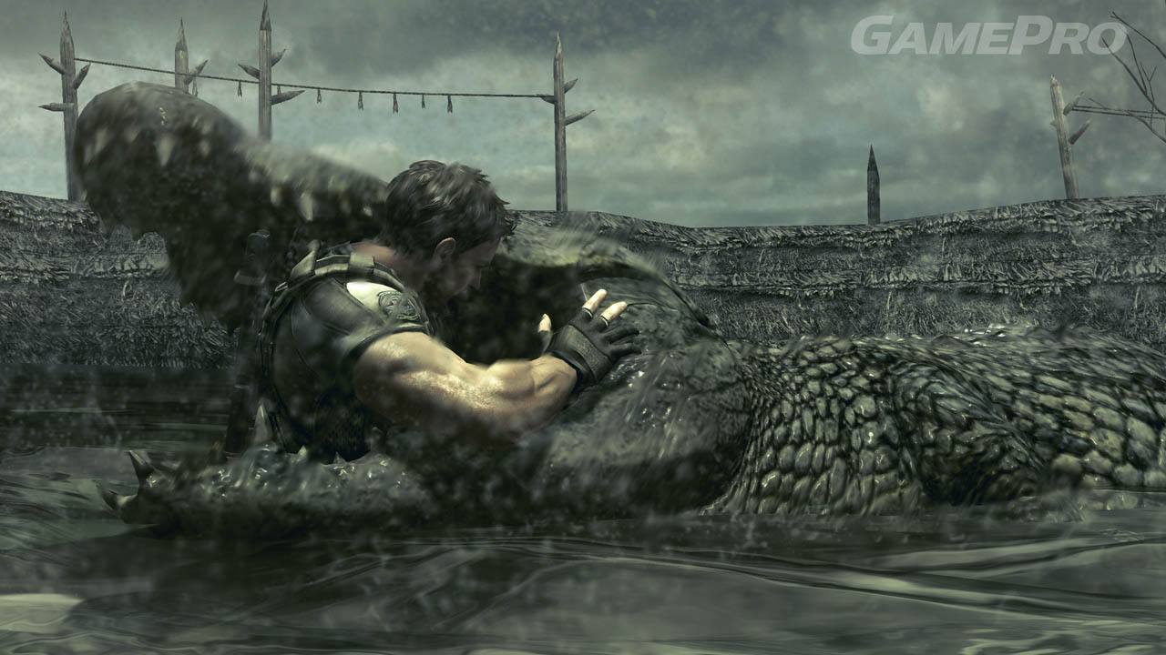 When the alligator grabs your leg, it is possible to escape by rotating the analog/directional pad or being saved by an ally by shooting the creature. The latter is the only way to save a player caught by the creature while in water.