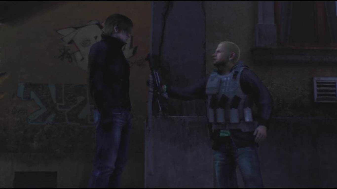 JD returning Leon's gun, asking him to get the Plaga before Buddy.