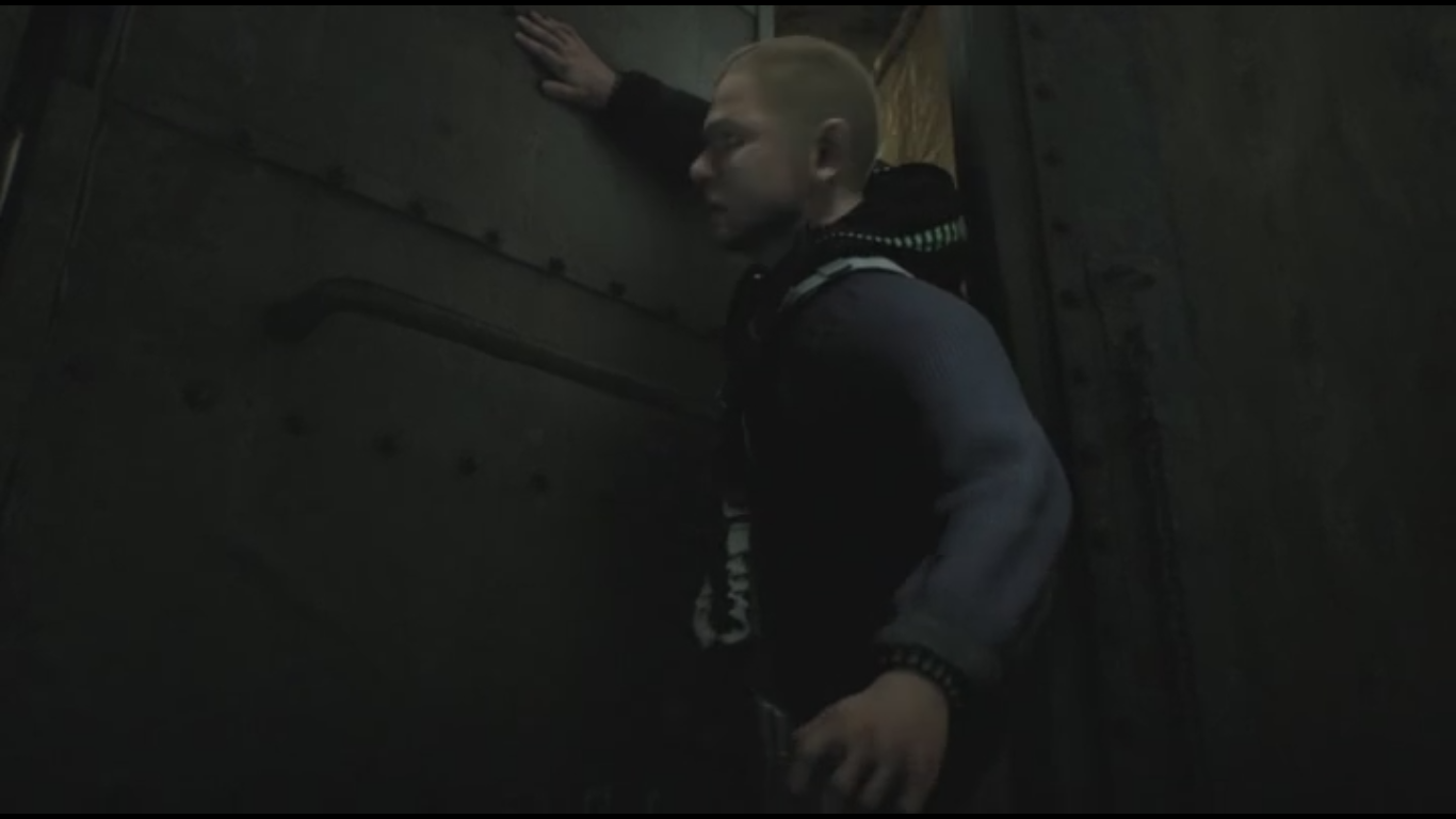 On their way out, they came across a steel door which Leon was forced to pry open with a crowbar he grabbed as a weapon. Three more infected came up behind the both of them as JD tried to squeeze through the door, but was unable to because of his size. A Plaga burst through the head of one of the infected, but JD was finally able to fit through the opening with the help of Leon, who promptly chained the door shut behind them. Seemingly pleased with their escape, JD found a ladder to the surface that he and Leon use.
