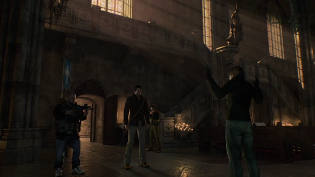 Kennedy and JD escaped the tunnels on their own, headed to a church the rebels were using as a base. The two evaded a number of Ganados, and witnessed the unforeseen effects of the rebels' use of them, seeing numerous civilians implanting parasites into captives. When they arrived at the church, JD accused Kennedy of being behind what had happened to the people of the town. Kennedy informed him of the Plaga, telling him that it was a parasite infecting the bodies of those people. He also told JD of the harsh truth that those infected will never be human again the most one could achieve is to remove the spinal cord and hoping for paralysis. At that moment, Buddy entered the church with two other members of the resistance, a third watching Kennedy from above. Buddy informed JD that Kennedy was telling the truth, then told Kennedy that he had more questions for him. Responding that he perhaps this time they can get to the truth, Buddy promptly punched Kennedy and had the other rebels take him hostage again.