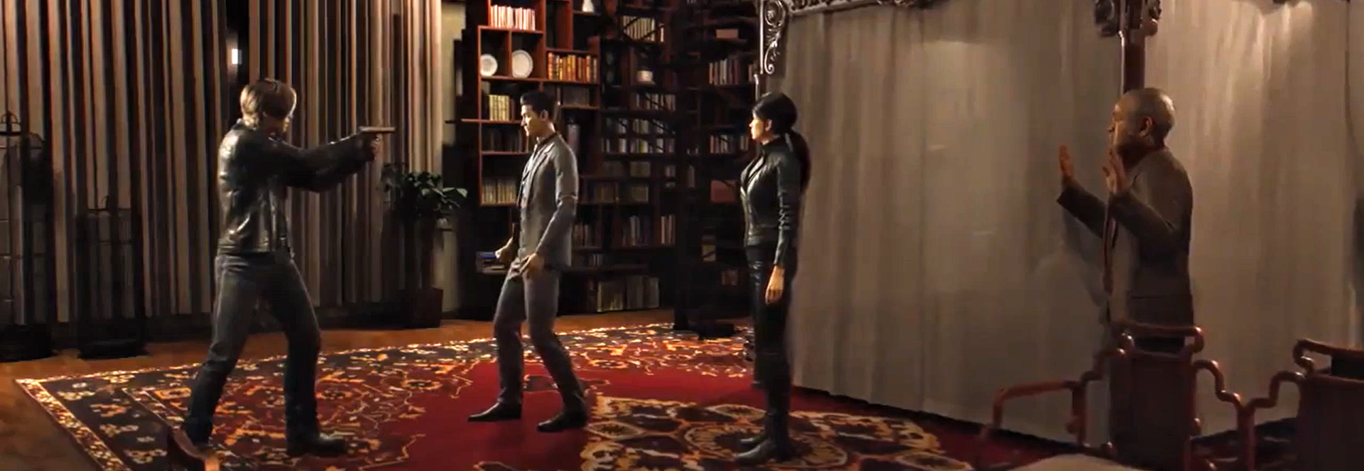 When Kennedy and Harper found "Wong," they followed her into a building, dodging several traps along the way. Eventually, they got to a room just in time to see Chris Redfield and Piers Nivans cornering her, whom they believed to be the one responsible for the deaths of Chris' men and the outbreaks that have occurred. Chris had his assault rifle aimed and ready to shoot when Kennedy knocked it out of his hands to prevent him from killing her. They had a brief struggle, ending with the two pointing their guns at each other. Kennedy told Chris to put his gun down, saying that she was a "key witness" and they needed her, but Chris refused and abstractly told Kennedy that she is the one who committed the global bio-terrorist attacks. Kennedy disagreed, saying that it was Simmons who was really responsible. Chris yelled that he lost all of his men because of "Wong," and Kennedy responded that he lost over seventy thousand people including the president because of Simmons. After a tense moment "Wong" managed to escape with a flash bomb, and Chris pursued her with no intention of harming her after Kennedy's words. Kennedy and Harper then made their leave to find Simmons.