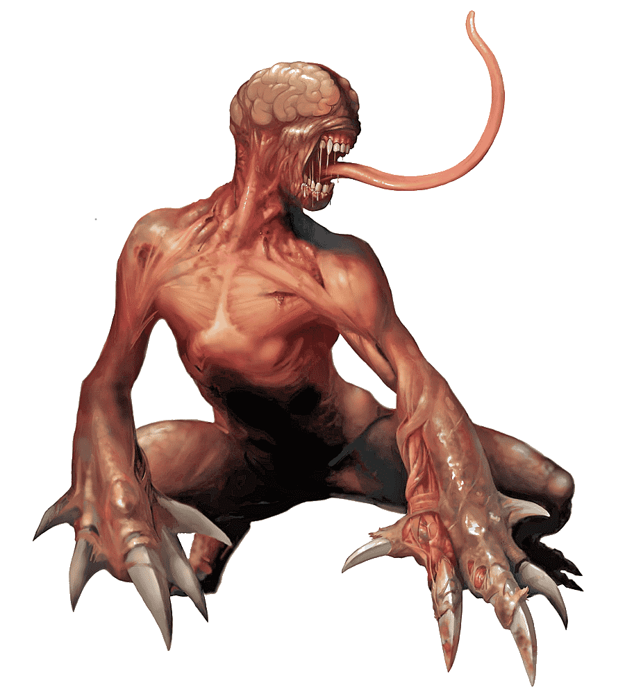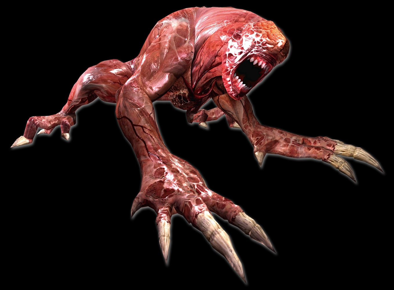 Lickers are noted for their exposed and expanded brains, lack of skin and eyes, extreme sensitivity to sound, substantive and newly reformed muscle structure and reformed bone structure, large talons and eponymous barbed tongues, the latter of which are capable of piercing flesh and decapitating prey.[3] They should not be confused with Crimson Heads, which are the result of the V-ACT Effect from a separate t-Virus strain.