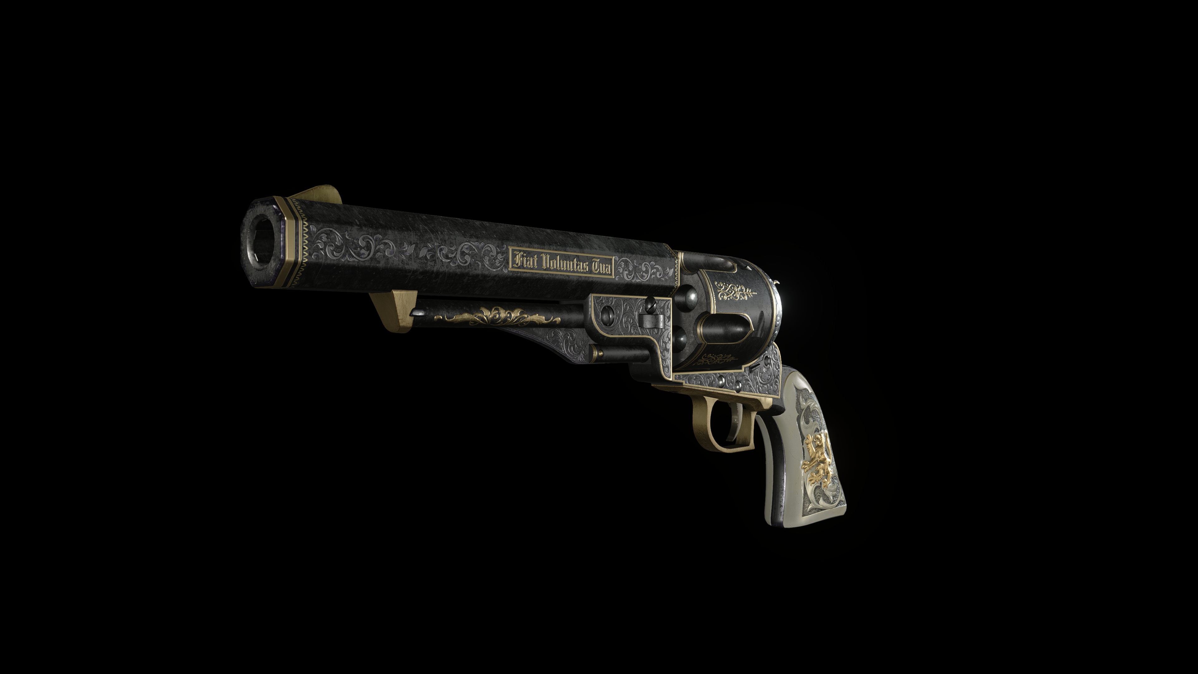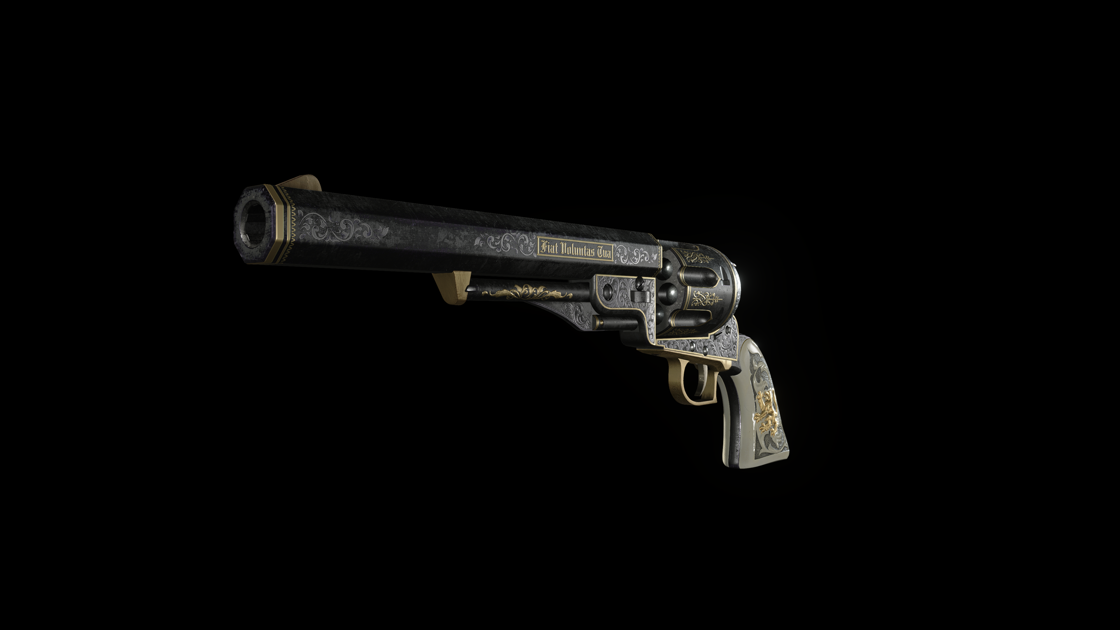 - The barrel is inscribed "Fiat Voluntas Tua", which is Latin for "Thy will be done".