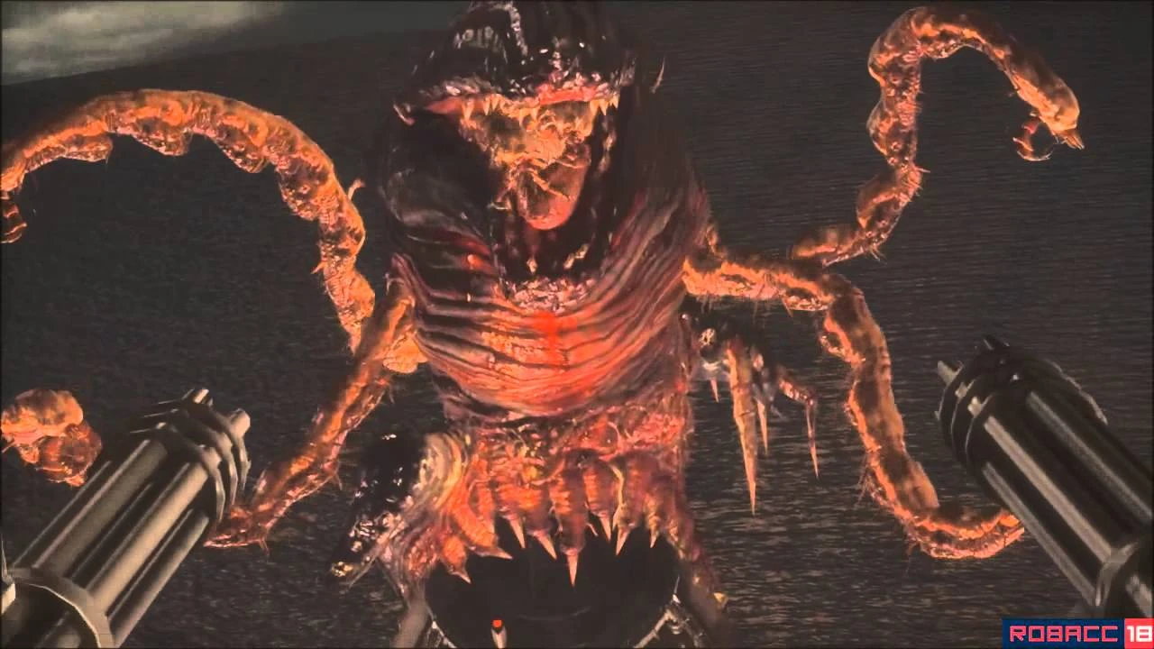When Chris and Jill attempted to evacuate the Zenobia after the self-destruct countdown had been triggered, the Malacodas destroyed the rescue helicopter and revealed its host, a gigantic organism.[4][5] With the help of rocket launchers dropped by Kirk Mathison, the agents managed to subdue the beast and boarded a second helicopter. However, the dozens of Malacodas continued after the two agents. They managed to weaken the host enough to fire a missile down its throat, killing both the host and the Malacodas themselves.[6]