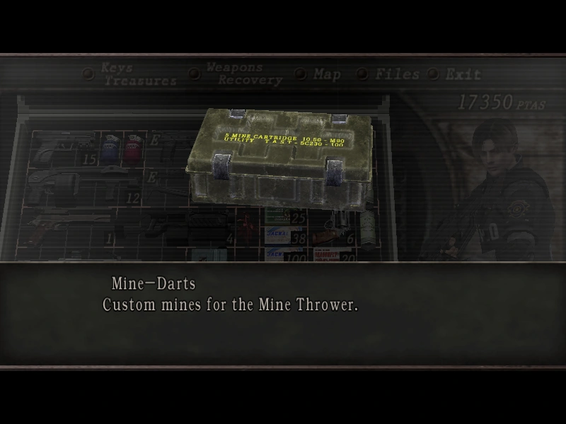 Ammunition for the Mine Thrower will not appear unless Leon has this weapon in his inventory. Mine-Darts are relatively rare and dropped by enemies and crates at random.