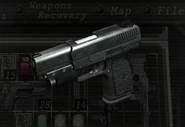 "This 9mm handgun will blast a hole through two enemies!" — Fully upgraded Examine |