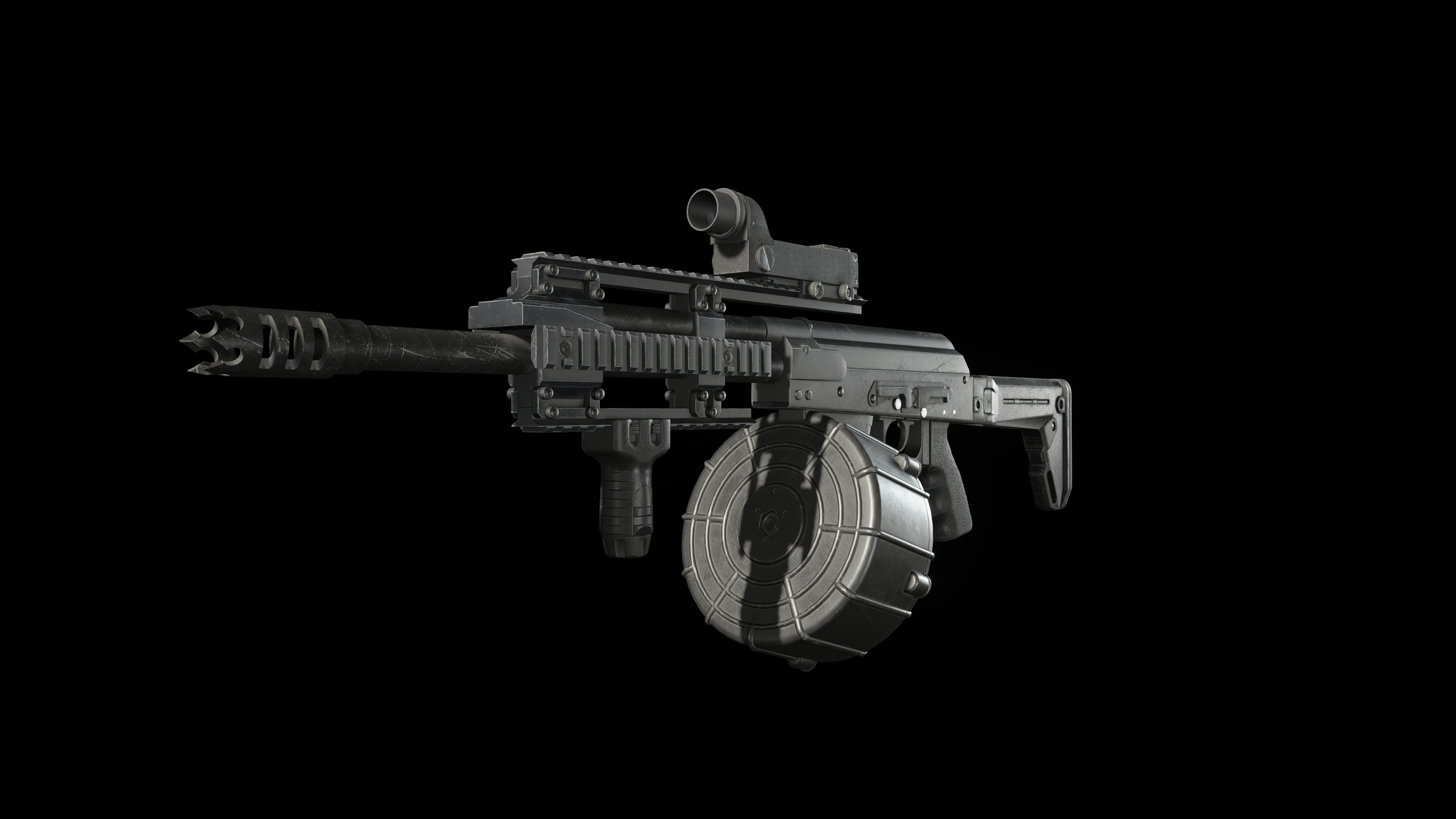 | Basic | With Red Dot Sight | With Long Barrel | With Red Dot Sight and Long Barrel | Basic | With Red Dot Sight | Basic | With Drum Magazine | ||