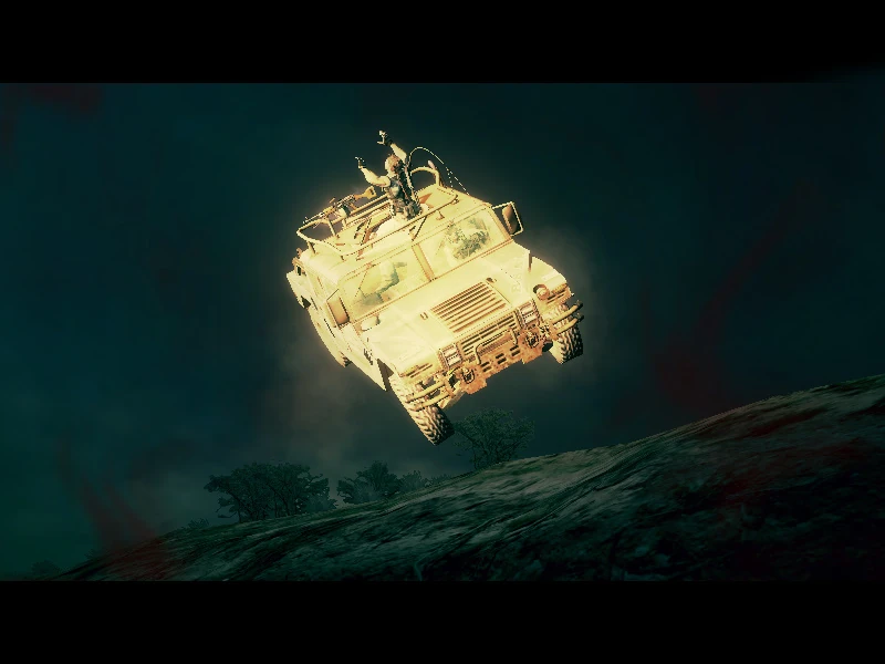 After defeating the Popokarimu, Chris and Sheva were picked up by B.S.A.A Dave Johnson with a Gambit mounted with two heavy machine guns. Delta Team Captain Josh informs the duo of how Las Plagas has turned most of the towns folk into Majini until Delta team gets into dire straits themselves. During their ride, they were chase down by Majini riding a motocycle. It is up to Chris and Sheva with two heavy machine guns to shoot while Dave drives. Some majini try to blockade the road with a truck, another truck tries to knock the gambit into the river
