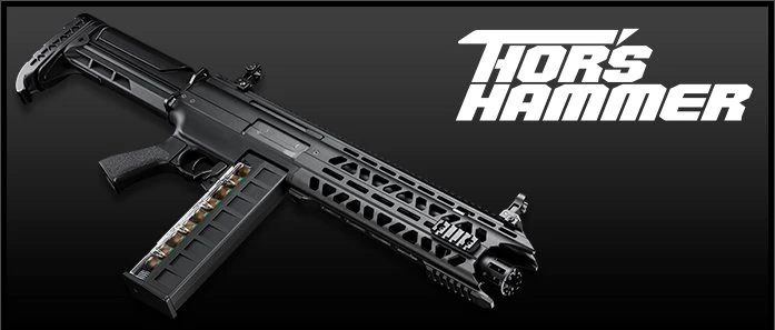 Thor's Hammer - AW Model-02 (トールハンマー<A.W.モデル02> tōruhanmā<A.W.moderu02>) is part of Chris' starting inventory during the Not A Hero scenario. It takes up 2 spaces of inventory and can hold 12 Shotgun Shells.