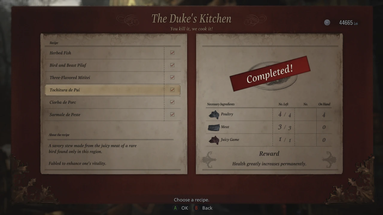 "A savory stew made from the juicy meat of a rare bird found only in this region. Fabled to enhance one's vitality." — Examination |