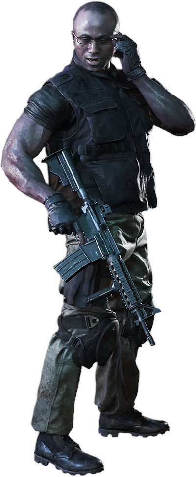Patrick was born and raised in Suriname, at the time one of the constituent countries within the United Kingdom of the Netherlands. As Suriname achieved independence, Patrick left for Europe and joined the French Foreign Legion.[1] During his time in the Legion, Patrick used his position to supply black marketeers with weapons. Following their use in a genocidal campaign, the weapons were traced back to Patrick and he was court martialled and given a life sentence. During his incarceration, Patrick was aware of a recruiter for a mercenary organisation who could get him out of jail. Umbrella bartered with the French for Patrick's freedom and enlistment in their Umbrella Biohazard Countermeasure Service,[4] where he was offered the additional role as a Monitor, to be paid extra for intelligence gathering.[1]