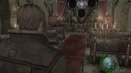 If Leon re-enters the church after he saved Ashley, he will encounter two Cultists armed with crossbows that appeared in the previous cut-scene. If killed, the cultist on the right drops a box of 5,000₧ and the one on the left drops a box of Handgun Ammo.