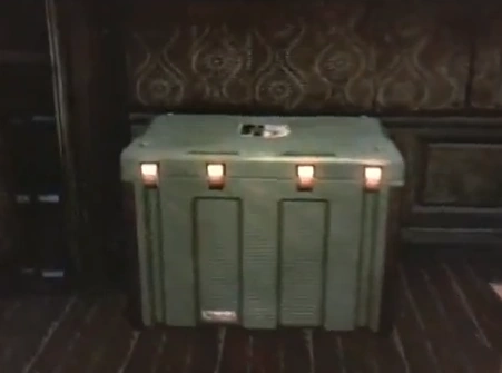 The Weapon Bench is a series of green boxes that are found throughout Resident Evil: Revelations. Veltro used these boxes as a means of storing and upgrading their weapons. Jill Valentine finds these boxes throughout The Queen Zenobia and uses them to her advantage. Whenever a player finds a weapon and picks it up, it will always appear in the box if it is ever dropped or switched for another weapon. Weapons are upgraded when the player collects Custom Parts and Illegal Custom Parts, and also Legendary Custom Parts in the HD Port's Infernal Mode.